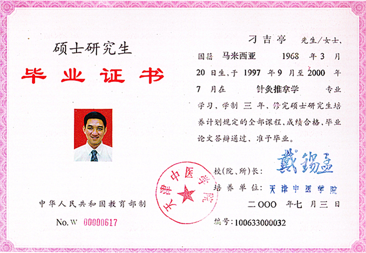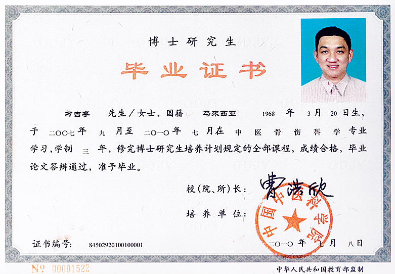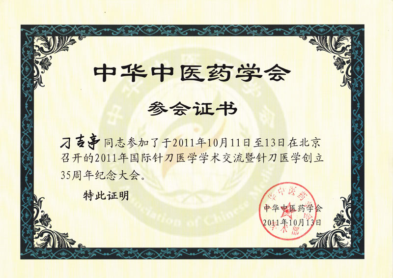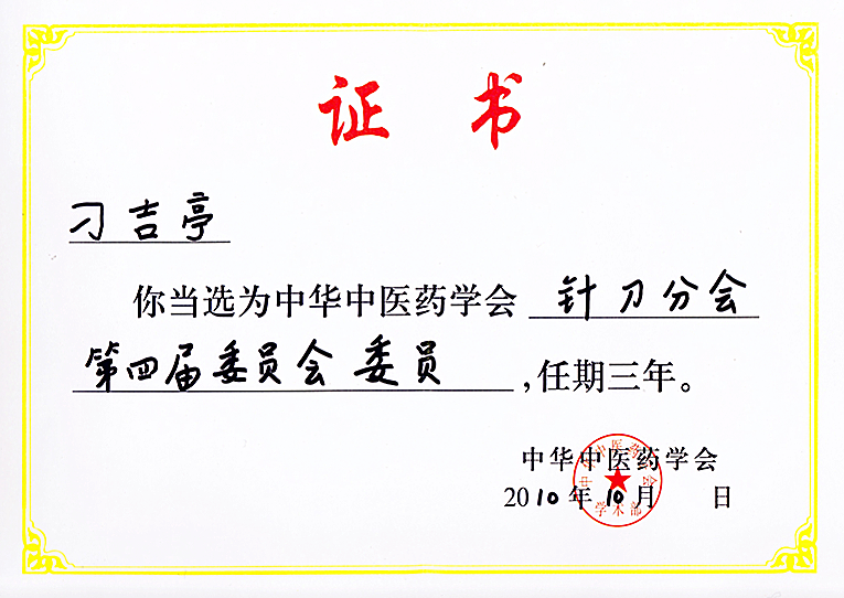 博士学位证书 博士研究生毕业证书 硕士研究生毕业证书 中华中医药学会针刀分会第四届委员会