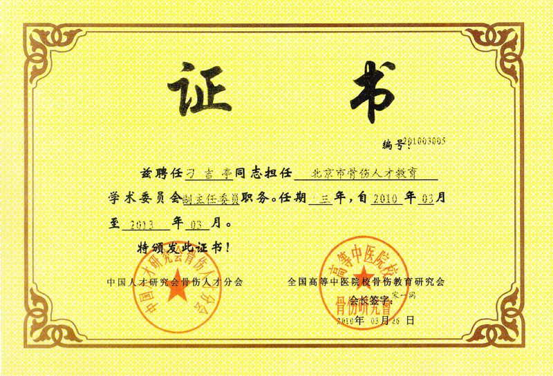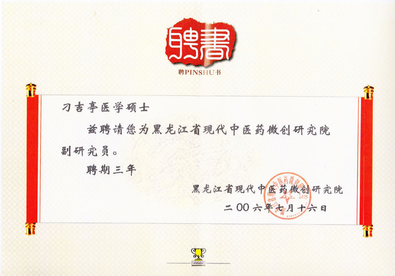 北京市人才骨伤教育学术委员会 黑龙江省现代中医药微创研究院副研究员聘书 香港针灸协会会员证书 中国文化研究会传统医学专业委员会