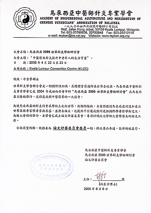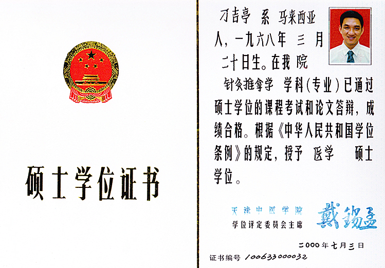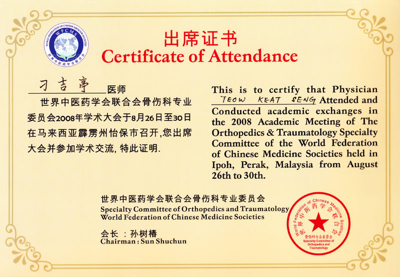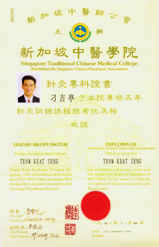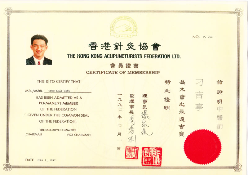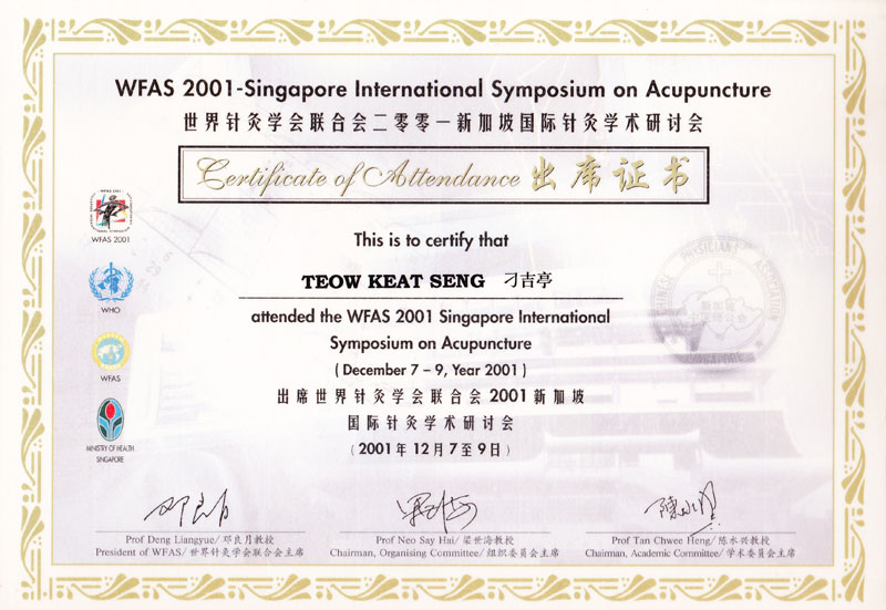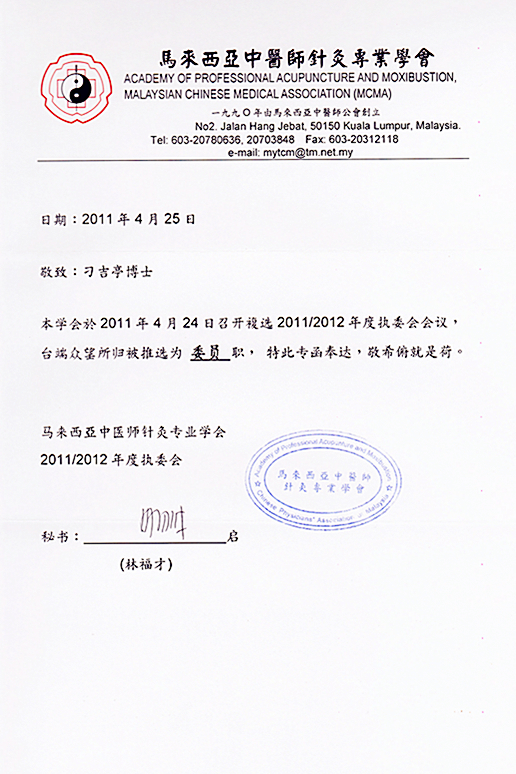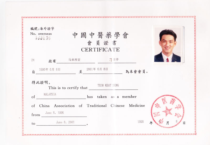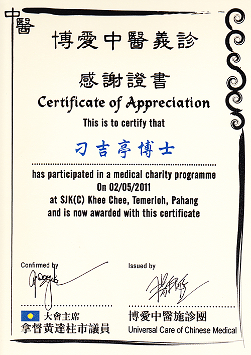 博爱中医义诊感谢证书 新加坡中医师公会会员证书 新加坡中医学院毕业证书 新加坡针灸专科证书 马来西亚中医师针灸专业学会 霹雳中医中药联合会